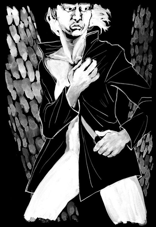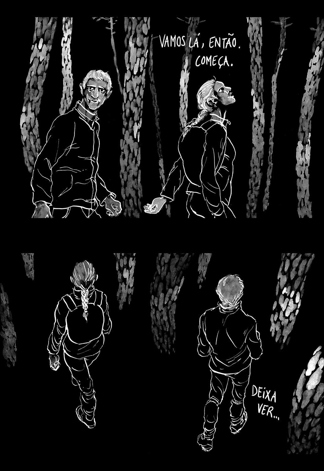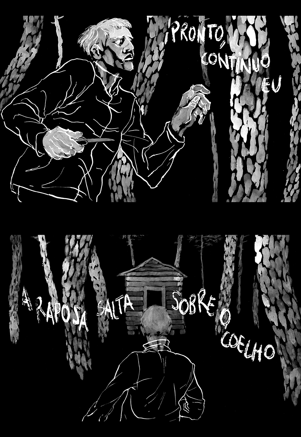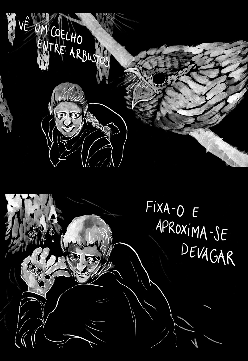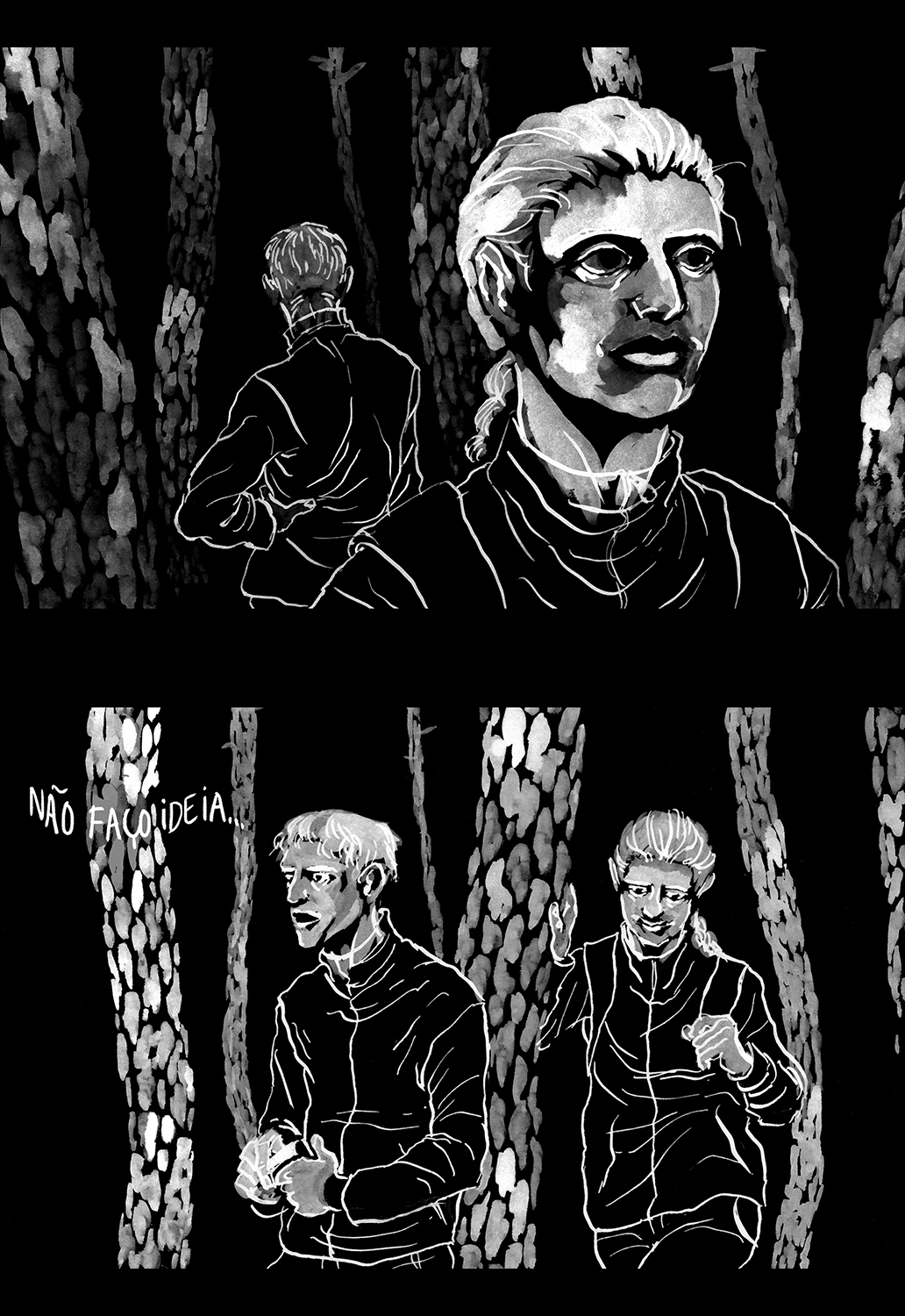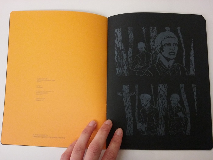 Comic published by Mundo Fantasma in Riso in 2016. Grey ink over black paper, original drawings in white gouache on black paper.